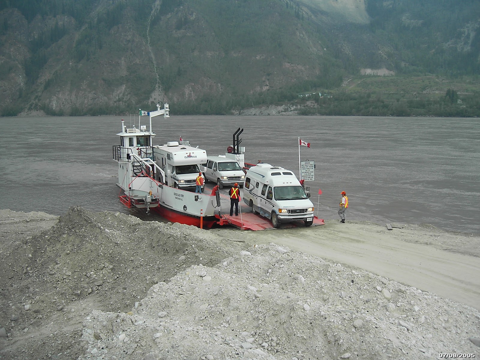The Dawson City ferry was my reward for finishing the 'Top of the World Hwy'. The Yukon river was between me and town. With a lot of forethought the city fathers had installed a ferry at that point to take me across the river. Well it wasn't there just for me, others used it as well. ....and the good part, It was free, my favorite kind.